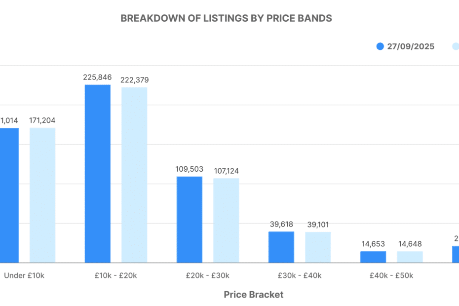UK weekly used car market data to 27th September 2025 reveals listing volumes, average prices, regional trends and fuel-type shifts. Insights for dealers, analysts and data buyers on short-term market direction.